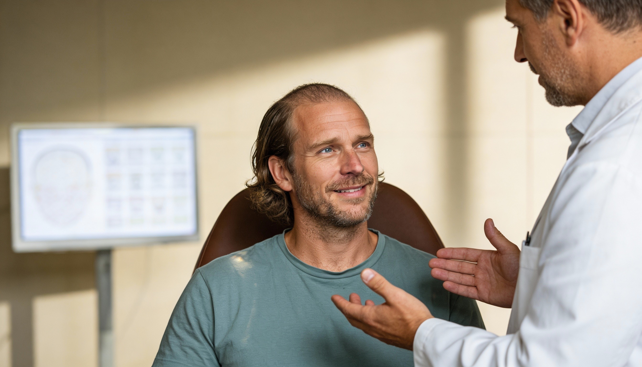 Die ausgedünnten Haare betreffen sowohl Frauen als auch Männer, oft lange bevor eine ausgeprägte Glatze auftritt. In diesem Stadium suchen viele Patienten nach effektiven Lösungen ohne chirurgischen Eingriff.